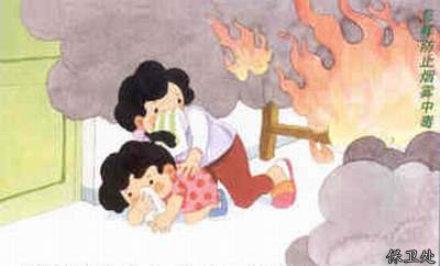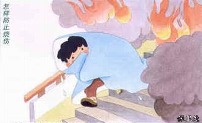 用湿毛巾等捂严口、鼻、弯腰走或匍匐前进