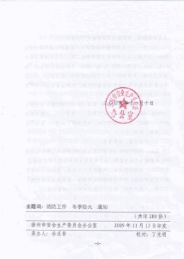 现将徐州市安全生产委员会《关于加强冬季防火工作的通知》(徐安办[2009]39号)转发给你们,希望各单位按照通知要求,认真分析研究本单位冬季防火工作中存在的突出问题,制定针对性的有效措施,开展安全自查隐患自改工作,坚决遏制火灾事故的发生,为学校稳定发展创造良好的消防安全环境。