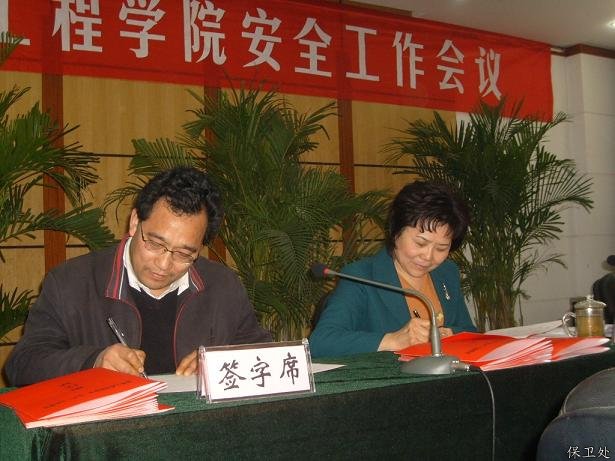 会上,保卫处副处长吴凯代表校安委会向会议报告了2007年学校的安全工作情况,对2008年安全工作提出了具体意见。副校长陶柏芳代表校党、政分别与44个校区、部门和二级学院安全责任人签订了《徐州工程学院安全(生产)目标管理责任状》;同时,在会上作了重要讲话。陶校长首先传达了省、市有关会议精神,并就今后一段时期的安全形势提出了工作要求:一是统一思想,提高认识,进一步增强做好学校安全生产工作的责任感和紧迫感。二是突出重点,狠抓落实,认真做好学校2008年安全生产工作。三是加强领导,明确责任,确保学校安全生产工作落到实处。最后要求各单位要加强领导,通力合作,强化监管,努力完善“学校统一领导、保卫部门依法监督、全校师生共同参与”的安全工作格局。