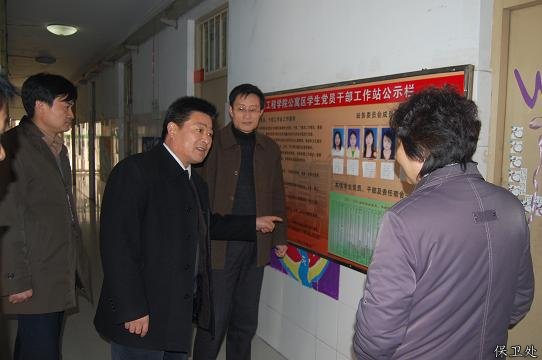 考核组听取保卫处吴凯副处长汇报徐州工程学院2008年安全生产工作情况后,查阅了文件资料及管理台帐;并在副院长陶柏芳等人陪同下,深入到监控室和学生宿舍现场检查和抽查,核实有关情况。查后,考核组对我校2008年安全生产工作给予肯定,但同时也提出了一些不足和建议。