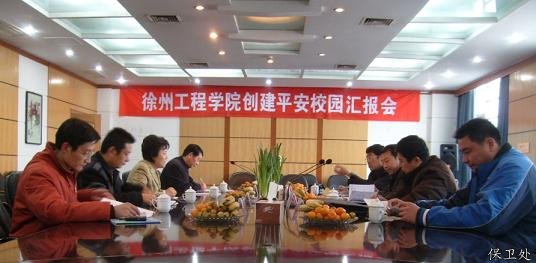 “平安校园”创建工作是省、市创建“平安江苏”、“平安徐州”的一项基础工作,我校于去年开始申报平安创建工作。副院长陶柏芳出席汇报会,保卫处副处长吴凯作了创建总结汇报。院办、后勤服务公司及宿管办等相关部门负责人与会。
