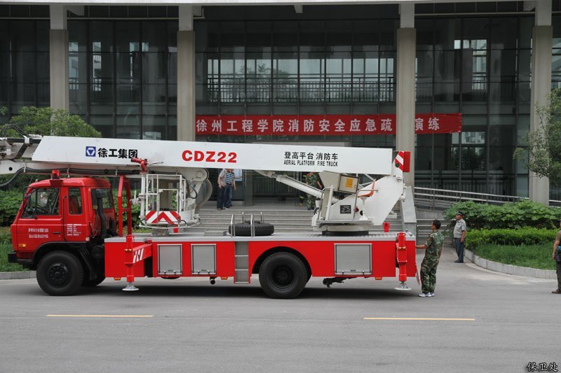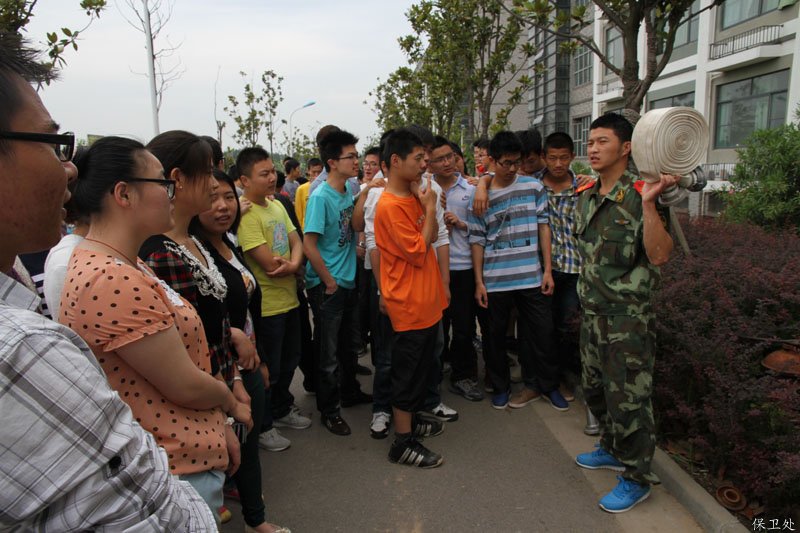 演练由校保卫处和食品、化工学院共同主办。由徐州市侯山窝消防中队提供技术和装备支持,二台消防车和一台云梯营救车参与演练。出席活动的领导有市侯山窝消防中队孙教官、保卫处副处长陈宋和食品、化工学院老师等。