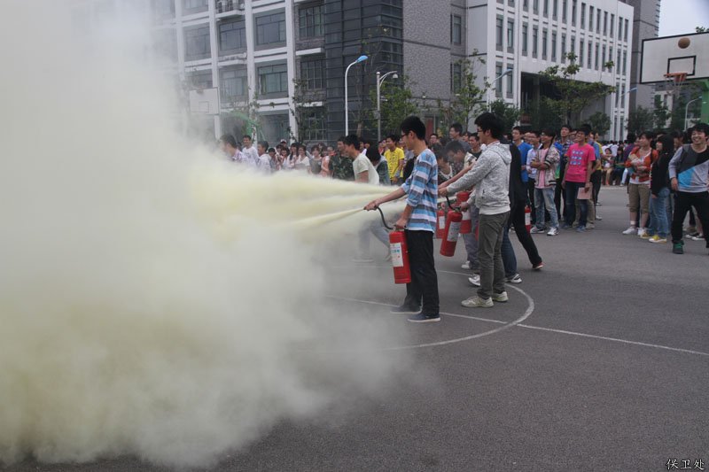 本次消防演练活动共有500多名师生实地参加,有2000多名大学生现场观摩。本次演练内容包括紧急疏散演练、高层建筑逃生演练和灭火实战演练三部分。火灾警报拉响后,同学们手捂口鼻,迅速而有秩序的从教学楼撤离。被困楼上无法撤离的学生则在消防队员