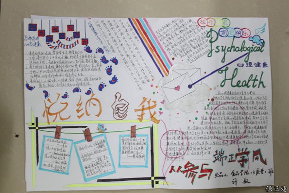 本次活动由“大学生心理健康”为主题的手抄报比赛、“爱的抱抱 温暖校园”以及大学生心理知识竞赛三个活动组成。同学们通过参与活动,对大学生心理健康的重要性和心理健康相关的知识有了更加感性和具体的认识和体验。