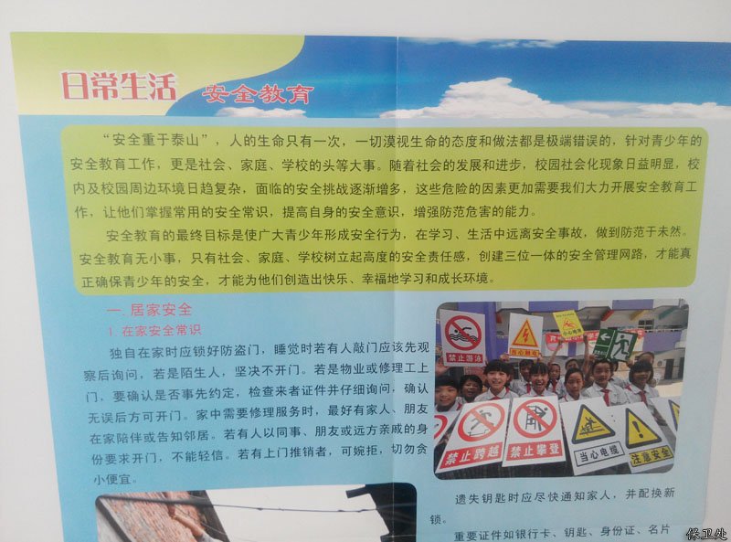为进一步提升我校师生安全生产意识。近日,保卫处集中在中心校区公寓楼内举行了安全生产宣传活动,宣传采用展板形式,向大家宣传了“防暴恐安全教育”、“日常生活安全教育”、 “交通安全教育”、“饮食安全教育”、“消防安全教育”、“网络安全教育”等。