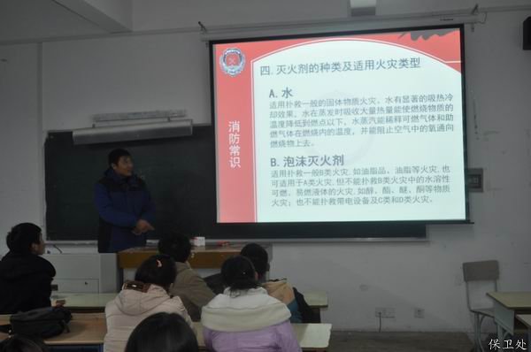 消防安全系列活动共由主题班会、消防知识讲座、宿舍消防安全隐患大检查三部分组成。各班积极响应,由班主任主持召开的主题班会,向同学们提出了冬季消防安全特别是安全用电的要求,增强了同学们的安全意识;由学生会生活部举办的消防知识讲座普及了火灾常识和具体逃生方法,带领大家了解了学校的消防设施和消防器材,学校重点部位的防火灭火基本方法和注意事项;宿舍是同学们停留时间最长的场所,确保宿舍安全显得尤为重要,由学生会组织的安全小组对宿舍进行了全面的消防安全特别是用电安全大检查确保排除宿舍安全隐患。