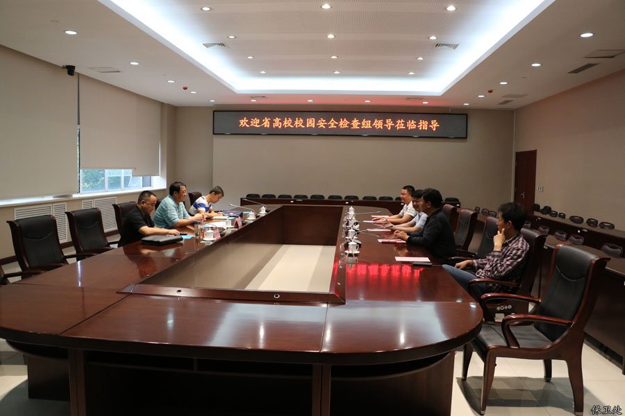 保卫处高文举处长主要从我校安全生产工作的特色作法和亮点向考核组进行了汇报。汇报结束后,检查组依次对我校图书馆、监控中心、食堂、学生公寓等地进行了实地查看。