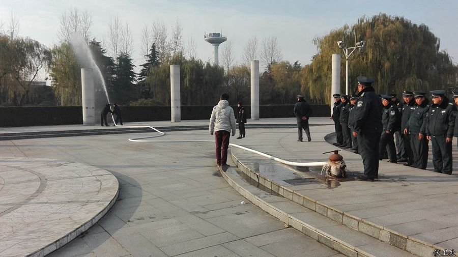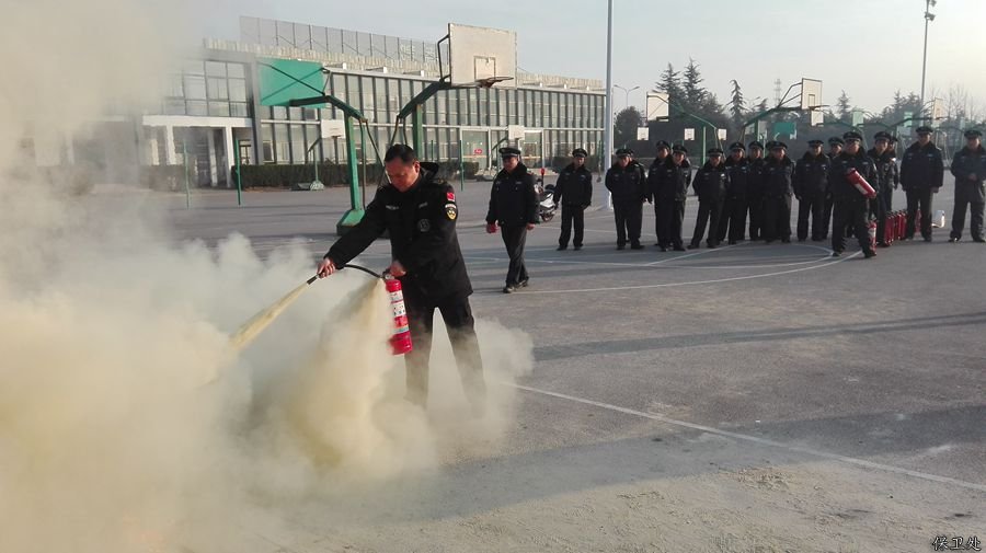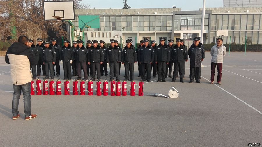 2016年11月30日,城南校区全体保安队员在篮球场举行了消防培训,通过这次培训提高了全体保安队员对一般消防器材的熟练使用程度、提高了应对突发火灾事件的处置能力。