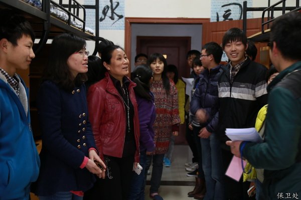 为了加强学生的安全教育,共创平安校园公寓,我院在学生处的有关精神指导下积极开展工作。在学生中进行了大学生吸烟情况问卷调查、宿舍卫生安全自查、生活部集中检查的基础上,各宿舍根据本宿舍违章用电、卫生、吸烟等情况进行自我整改。在2014年3月19日下午,化学化工学院党委副书记刘宁带领学生科老师和生活部的学干部门走进我院中心校区一期3号楼和2号楼的宿舍,突击检查我院学生宿舍卫生、安全隐患、违章用电情况。