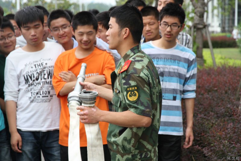 演练由校保卫处和食品、化工学院共同主办。由徐州市侯山窝消防中队提供技术和装备支持,二台消防车和一台云梯营救车参与演练。出席活动的领导有市侯山窝消防中队孙教官、保卫处副处长陈宋和食品、化工学院老师等。