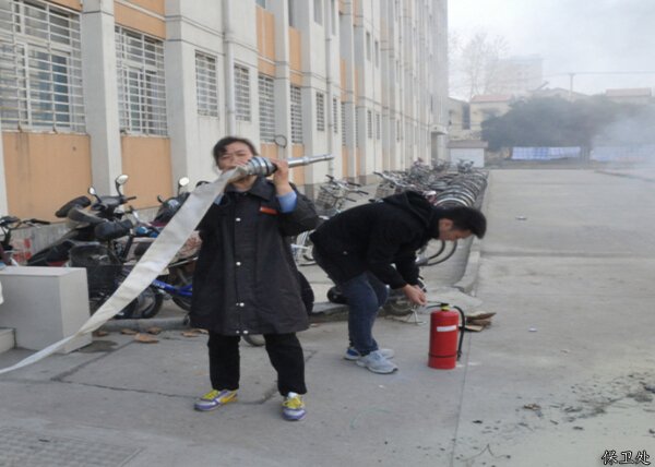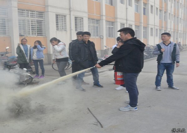 活动开始由主持人宣读了火灾现场的应急处置方案,灭火器原理以及基本操作方法及注意事项。本次演练活动分为两个进程。首先进行的是模拟火灾现场的疏散演练,一阵急促的哨声拉开了活动序幕,楼道中同学们紧急有序的疏散逃离,较快的抵达安全空地。接下来,由宿舍楼楼长向大家演示了灭火器,消防栓的使用方法,强调了灭火时人员站的位置,使用的技巧等。同学们的热情很高,部分同学还亲身体验了一把,现场气氛浓厚。在这个火灾频发的季节里,具备基本的消防知识,并熟练掌握灭火器的使用方法是必不可少的。