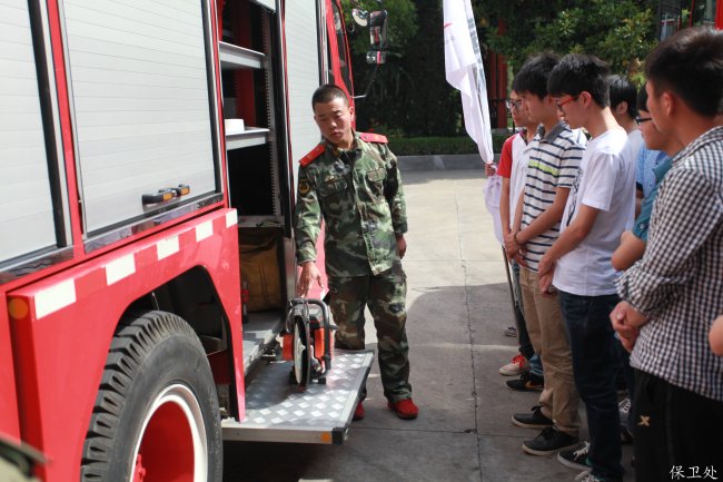 仪式签约完成后,消防官兵组织同学们参观了铜山区消防大队,给同学们展示了许多难得一见的消防器材。为使同学们更直观深入的了解消防知识,消防官兵开出了各种消防车,拿出了许多消防器材,并允许同学们随时提问。从压缩空气泡沫消防车到抢险救援消防车,再到直臂登高平台车,从各种喷头到防火服再到各种抢险破拆工具,消防官兵详细、耐心地进行一一讲解并进行必要的演示,使得同学们对消防知识有了更系统更专业的了解。随后,消防官兵还进行了滑竿上车的模拟表演,训练有素的消防官兵赢得了同学们的赞叹和敬佩。接着,同学们还参观了消防官兵的宿舍,看着一尘不染的整齐被褥,同学们的敬佩和仰慕之情油然而生。最后,同学们参观了消防大队的接警中心。各种先进的通讯设备、科学合理的接警程序使大家对消防官兵充满了信任和敬佩。