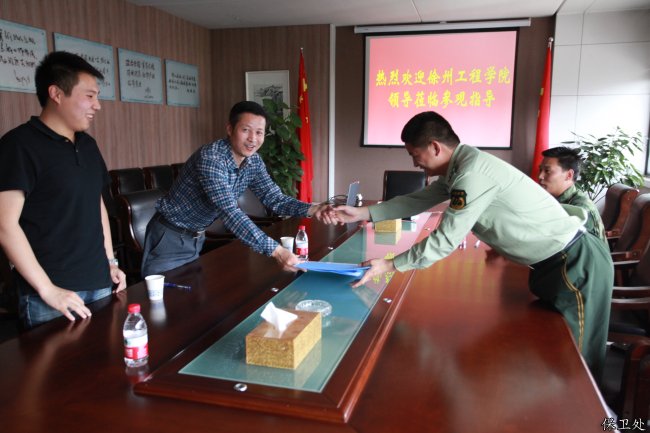 为了提高同学们的消防安全意识,加强国防教育,丰富同学们的精神生活。2014年5月15日下午,机电工程学院与徐州市铜山区消防大队举行了校外国防教育基地签约仪式。出席仪式的有铜山区消防大队的有关领导、机电工程学院党委副书记周卫东同志、辅导员翟羽佳老师。