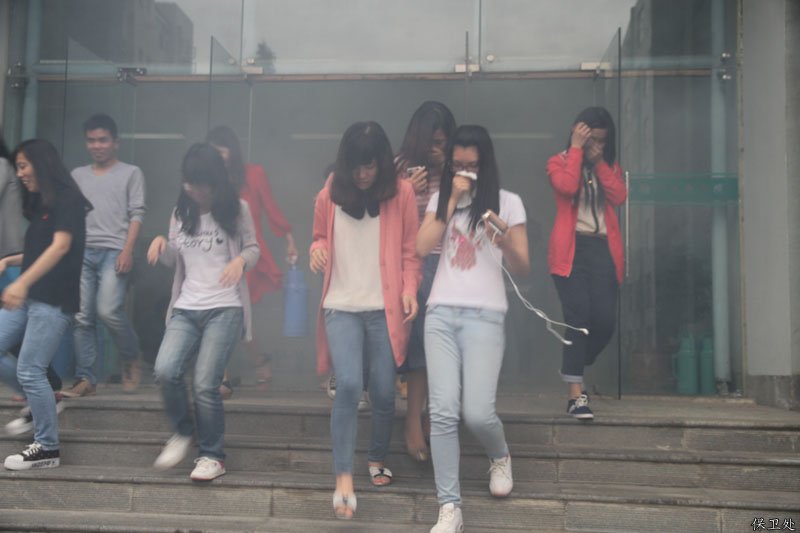 本次消防演练活动共有400多名师生实地参加,有1000多名大学生现场观摩。在整个疏散过程中,同学们在老师的组织下,紧张、有序的安全逃离火场,同时消防官兵利用滑降器解救被困学生。大约20分钟后,所有同学安全地从“火灾现场”顺利疏散到安全地带。