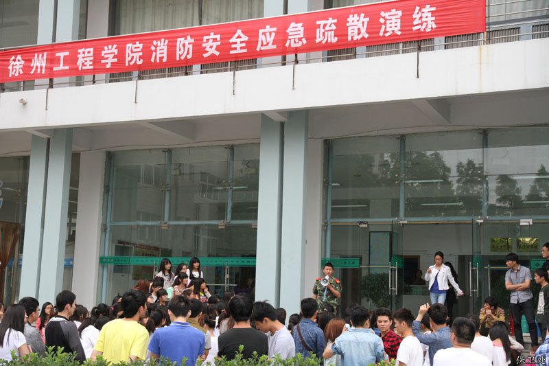 演练由校保卫处和外语、经济两大学院共同主办。由徐州市侯山窝消防中队提供技术和装备支持,二台消防车和一台云梯营救车参与演练。出席活动的领导有市侯山窝消防中队孙教官、保卫处副处长陈宋和外语、经济学院老师等。