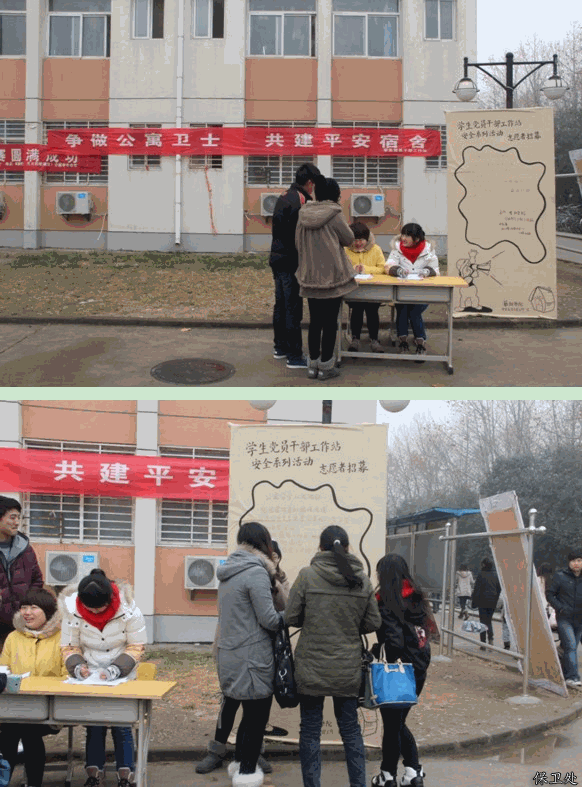 在艺术学院学生科的指导下,公寓安全系列活动之一已经顺利完成。党员干部工作站成员在十二号楼下为过往同学宣传本次安全活动招募志愿者,随后进入公寓楼内宣传活动,为志愿者讲解安全公寓如何创建,如何进行违章电器检查等问题,鼓励同学以自愿报名的形式参加活动,安排志愿者进入公寓对内务、卫生、夜不归宿、违章电器等进行检查。本次公寓安全教育活动,获得了较好的反响,同学都能积极主动的加入到志愿者的行列中来。