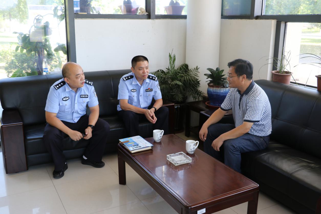 近日,徐州市公安局新城分局王鑫副局长一行三人来我校调研校园安全工作,保卫处鲁浩处长接待。
