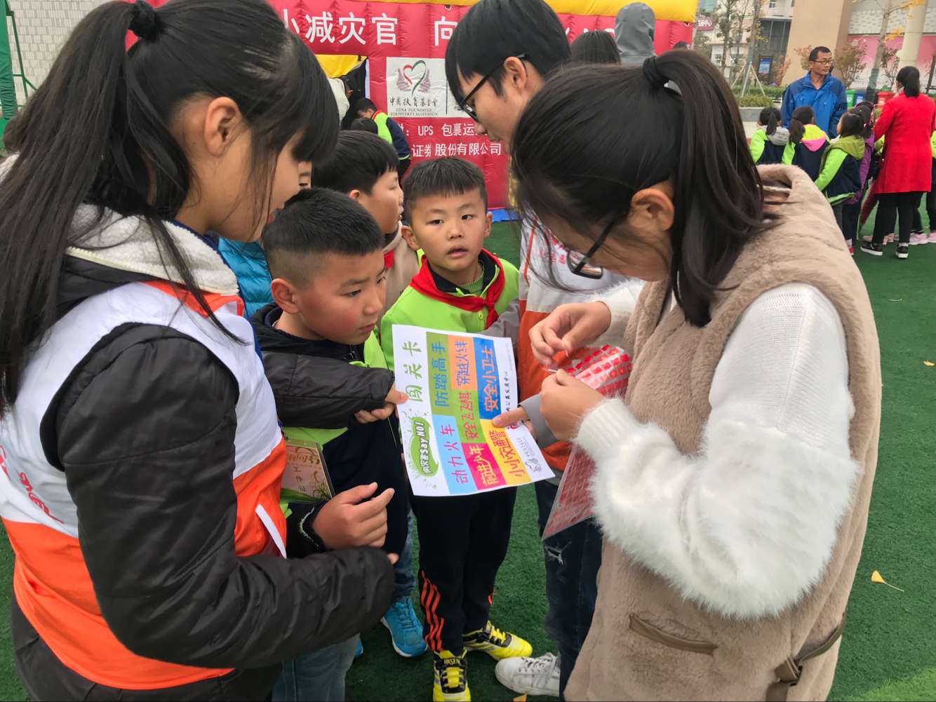 天色微青,细雨飘飘,风雨同行社志愿者们来到潘塘小学协助恩典公益布置现场。活动伊始,恩典公益向学校捐赠了急救包和灭火器等一系列消防器材。然后,志愿者们在恩典机构工作人员的帮助下引导小学生们进行游戏,保护小学生们的安全,维护现场秩序。现场游戏丰富多彩,在志愿者的带领下小学生们体验了如何在地震发生时自救、在火灾中迅速逃生、在日常生活中遵守交通规则。